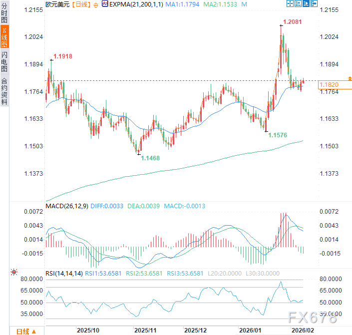 汇通财经APP讯——周一(2月9日)亚市时段,欧元兑美元于1.1820附近窄幅震荡。尽管上周五欧元/美元从关键技术区